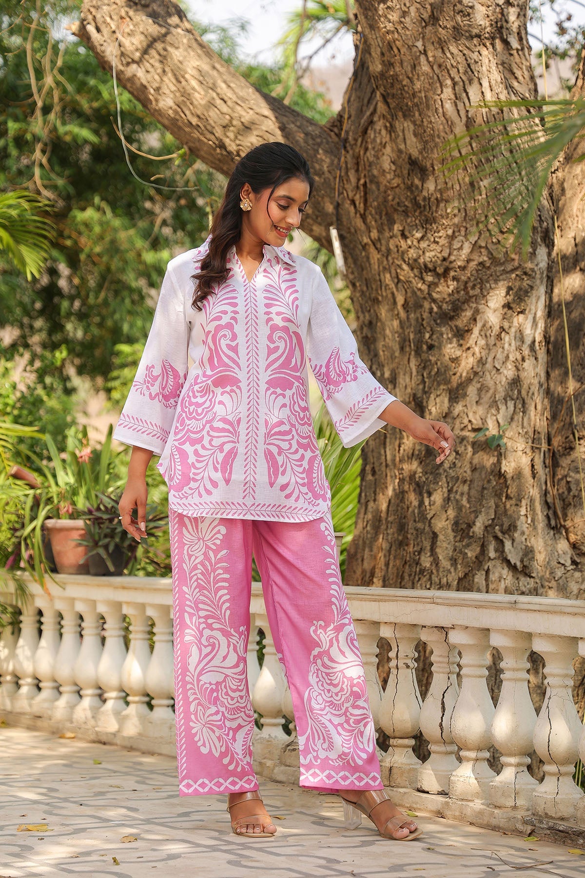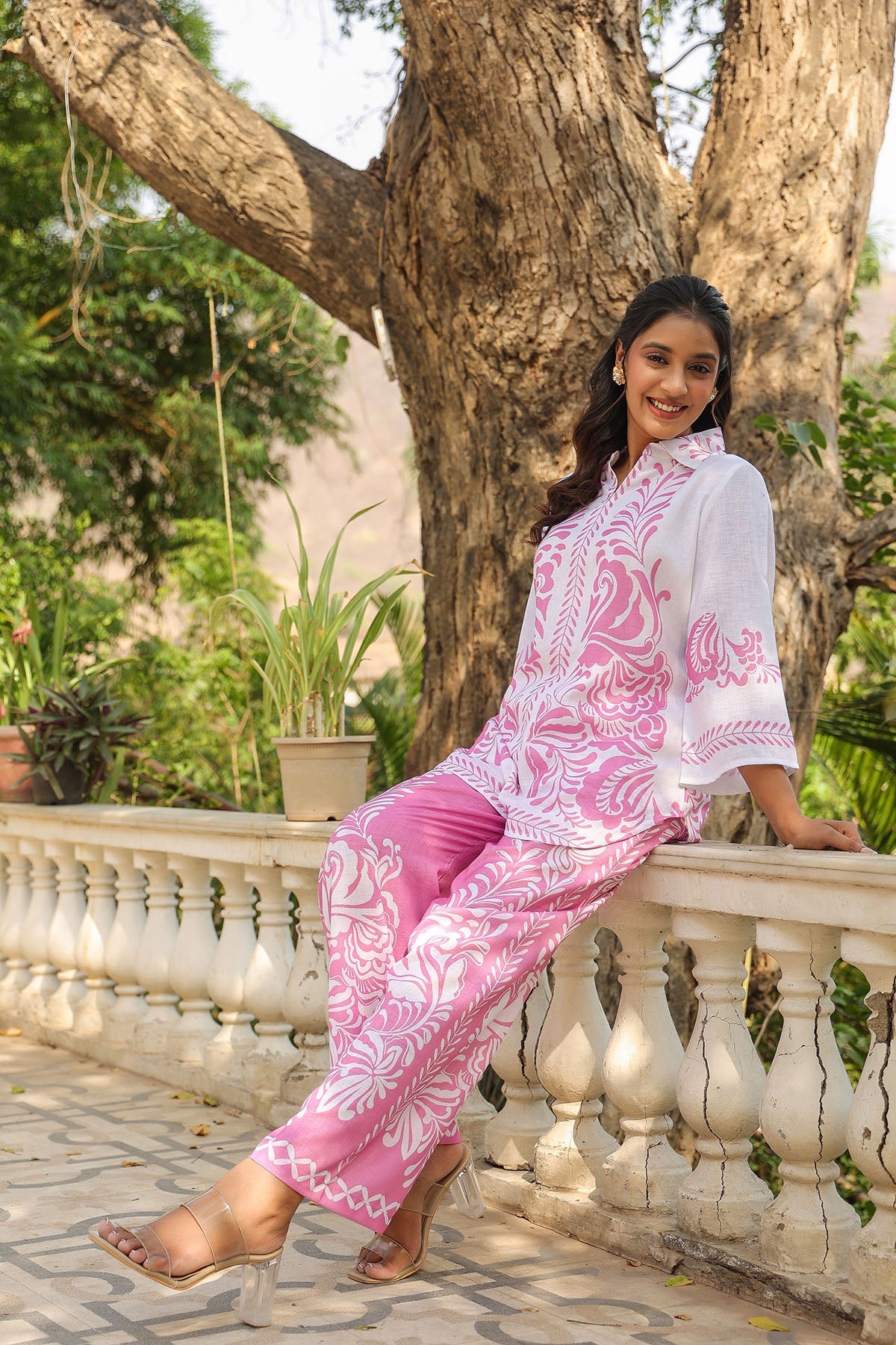 Pink Linen Printed Co-Ord Set