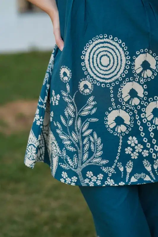 Suchita Jannat March 2024Verified BuyerObsessed with the PrintThe small floral and geometric prints are exquisite. It has a wonderful, handcrafted feel. I especially appreciate the small tassel and bead details on the neck—it makes jewelry optional!Teal Magic Cotton Co-ord Set Was this helpful? 0 0