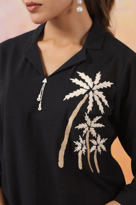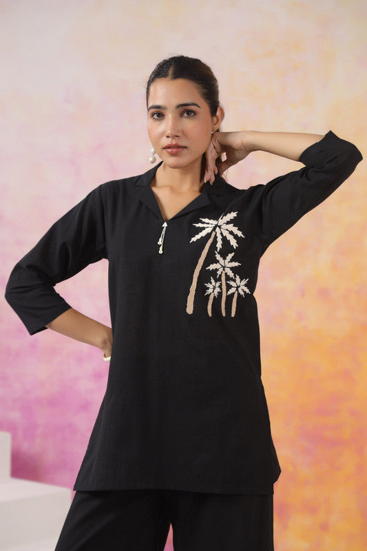 Black Palm Embroidered Cotton Co-ord Set